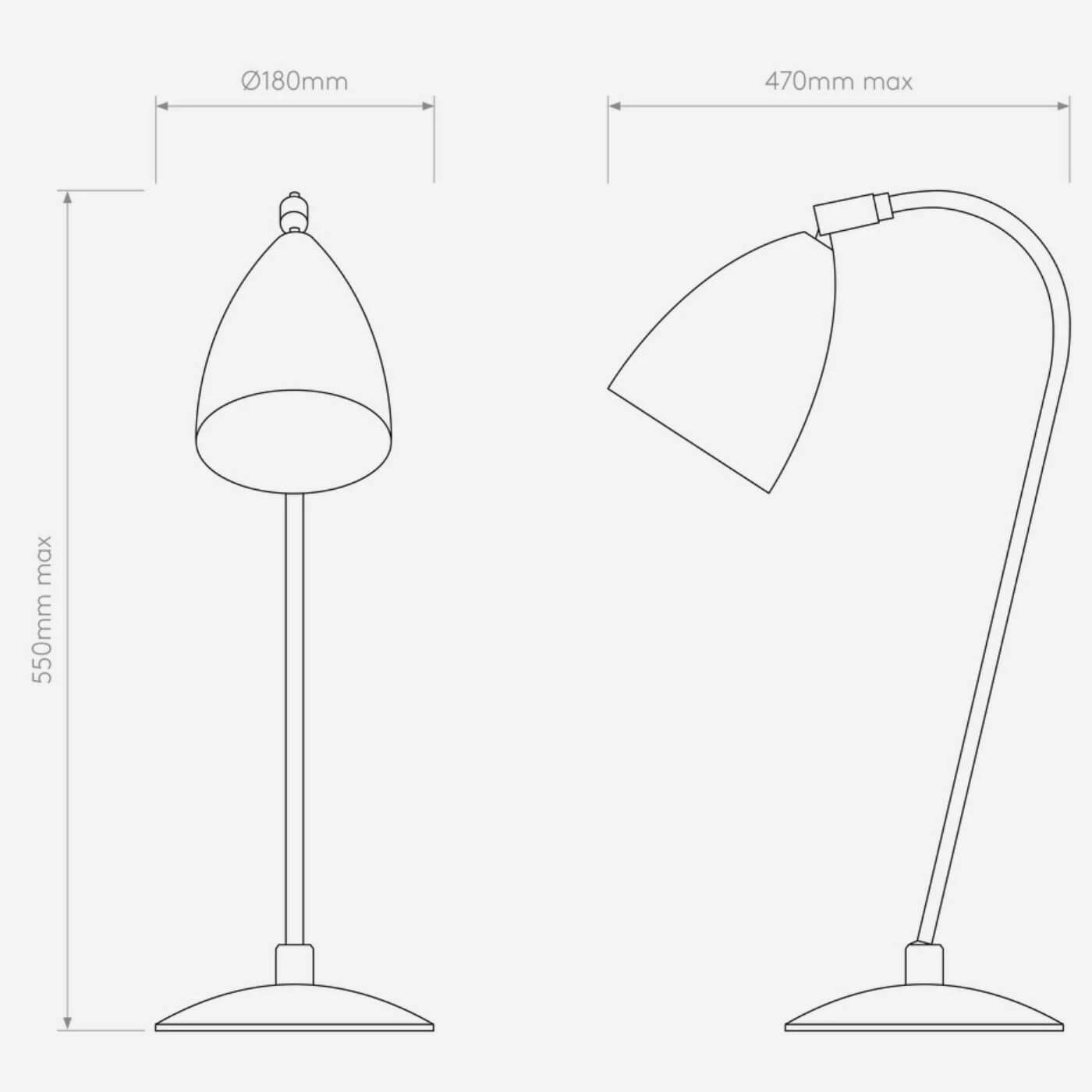 | Abmessungen | Höhe max. 550 mm, Tiefe max. 470 mm,Sockeldurchmesser 180 mm, Schirmdurchmesser 125 mm. |