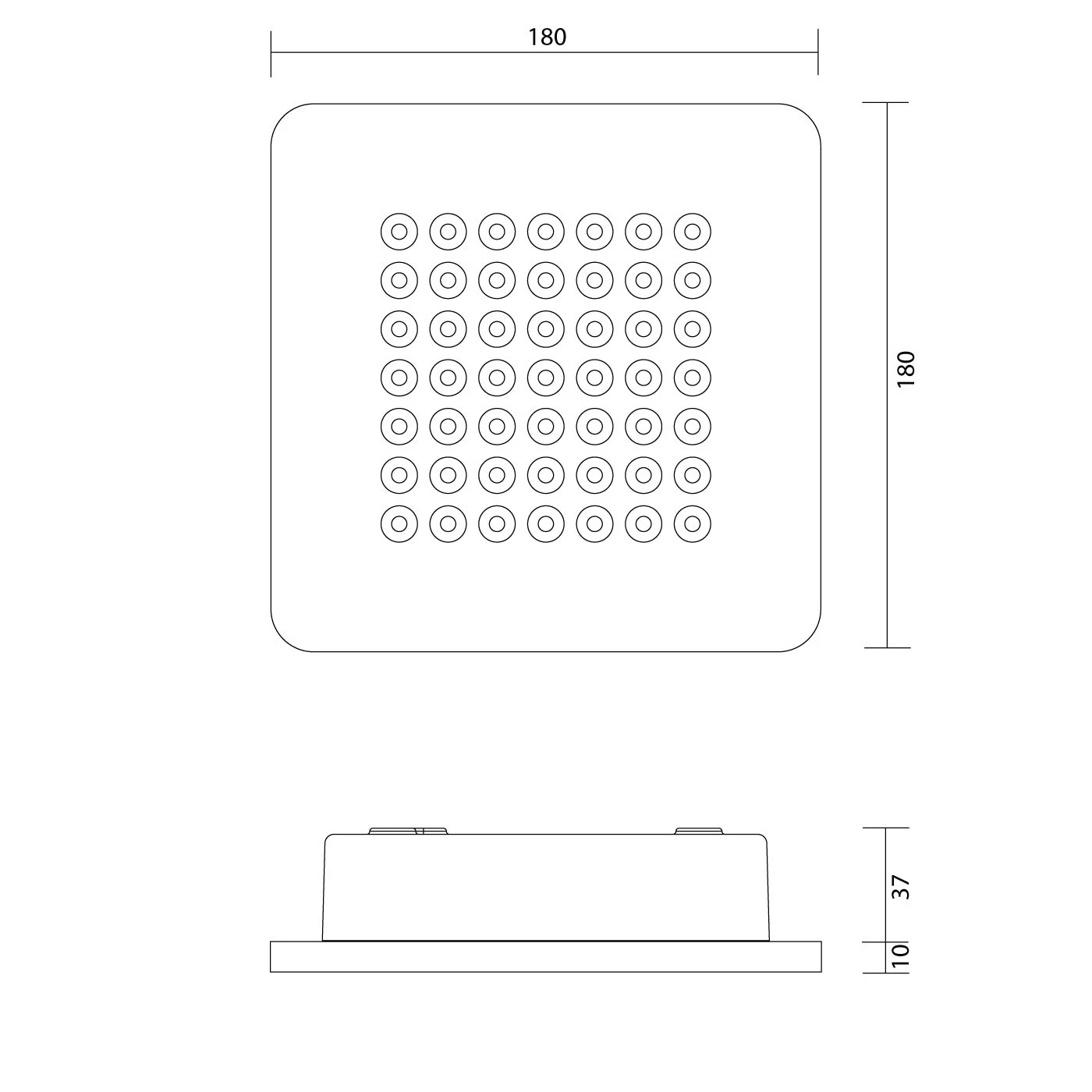 | Abmessungen | Breite 18 cm, Tiefe 18 cm, Diffusorhöhe 1 cm, Gehäusehöhe 3,5 cm, Gesamthöhe 4,5 cm. |